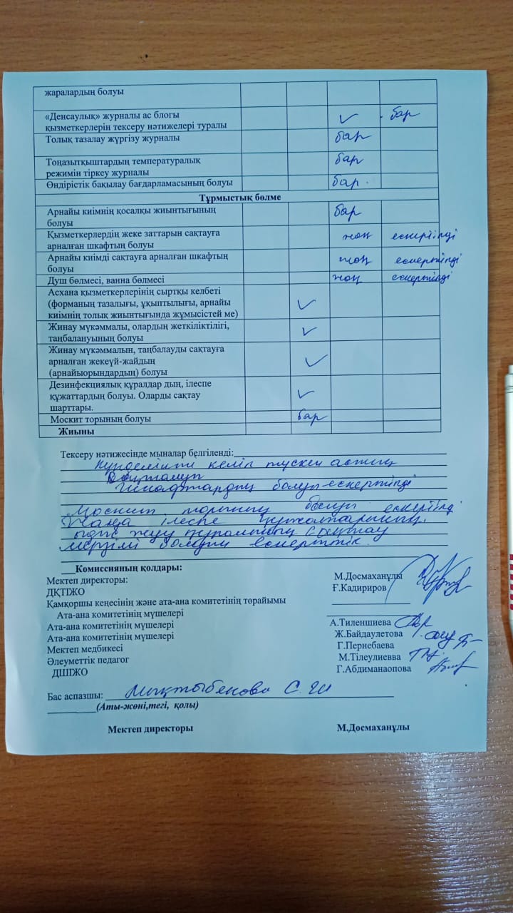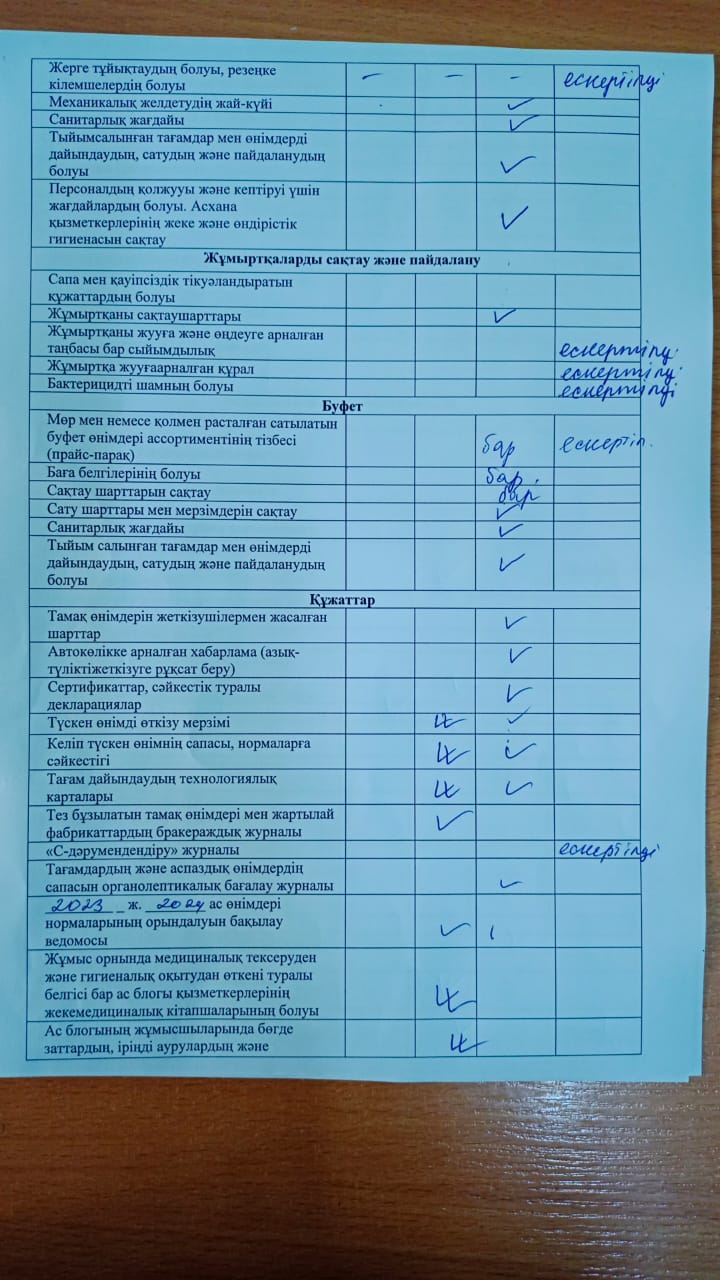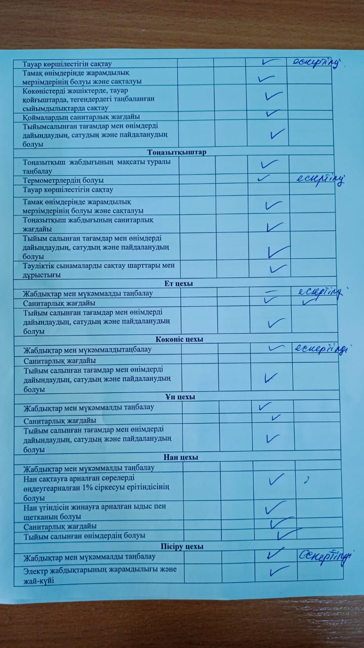 » » Тамақтану сапасын бақылау бойынша бракераж комиссия тобының тексеру жұмысының актісі