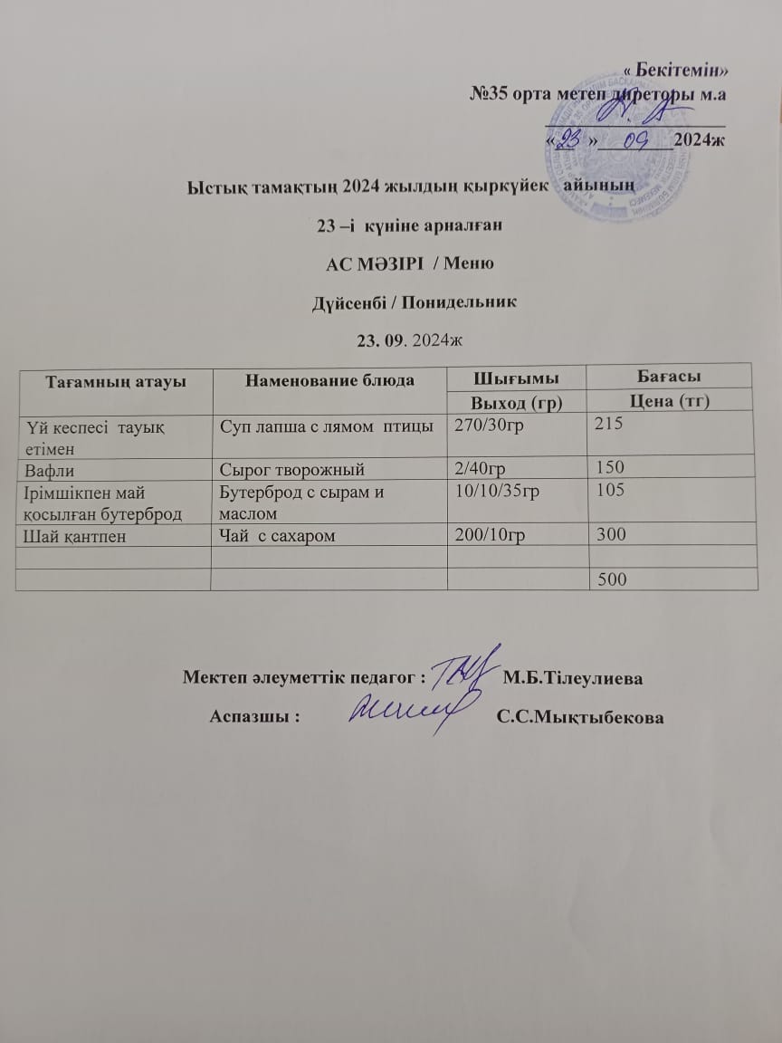 23 сентябрь 2024 Ас мәзірі Меню